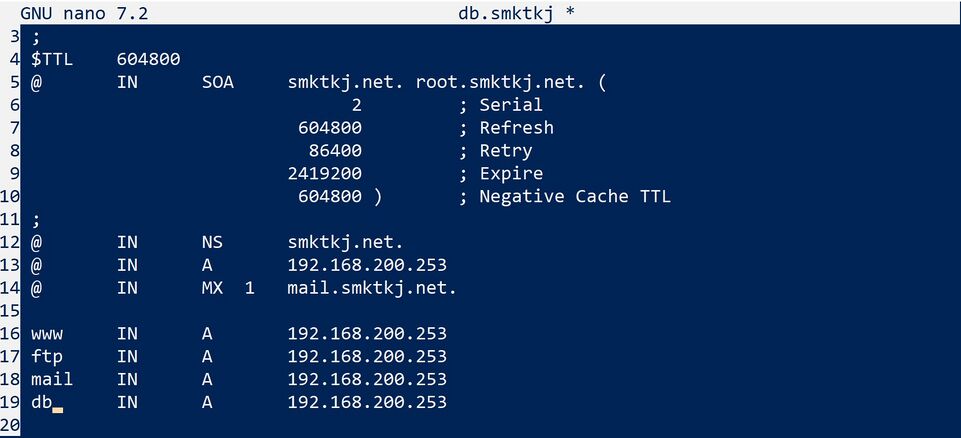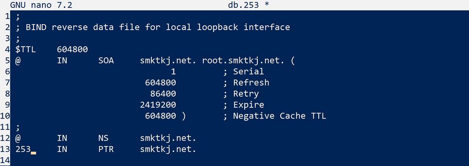 Setalah file di pastikan ada, tahap selanjutnya kita lakukan konfigurasi pada file tersebut. ketikkan perintah berikut ini untuk membuka file db.253.