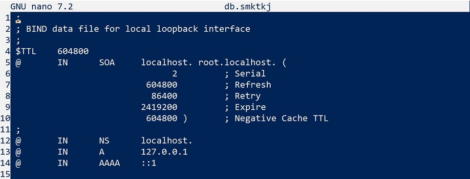 ketikkan perintah berikut ini untuk membuka file named.conf.local