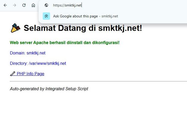 Setelah di pastikan sudah berada di dalam list, tahap selanjutnya kita ujicoba memanggil domain kita di aplikasi browser dengan menggunakan https. jika bisa terbuka dan tidak ada error maka SSL sudah berhasil terpasang. Sampai disini pekerjaan kita telah selesai.