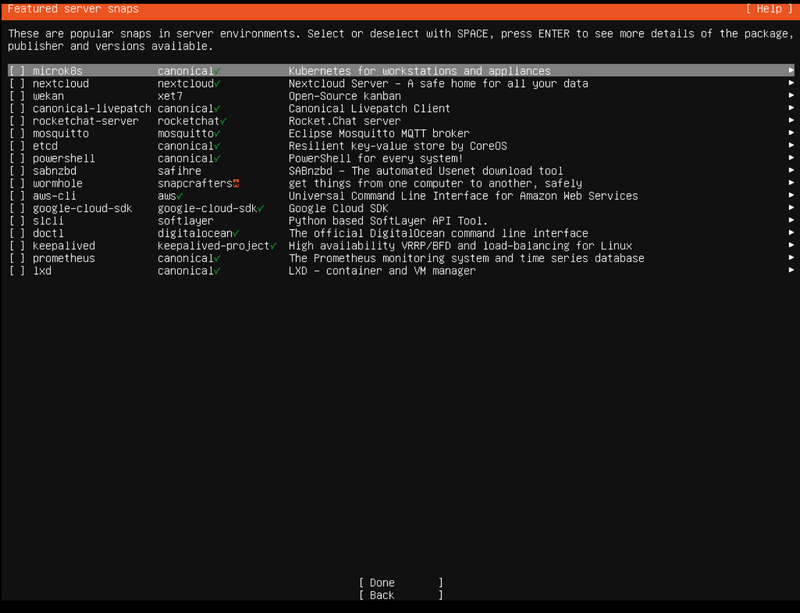 Pada tahap berikutnya adalah pilihan paket instalasi snaps yang bisa kita pilih. tahapan ini kita lewati saja terlebih dahulu.