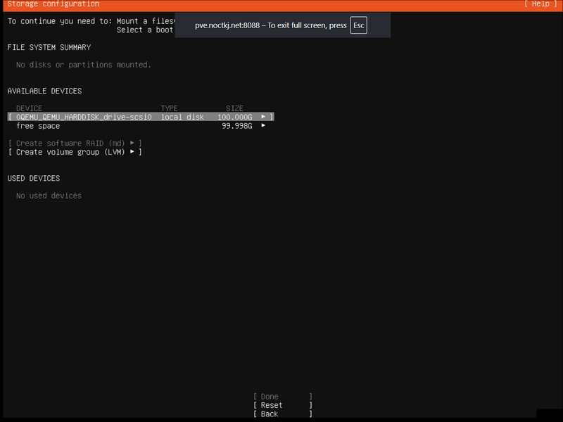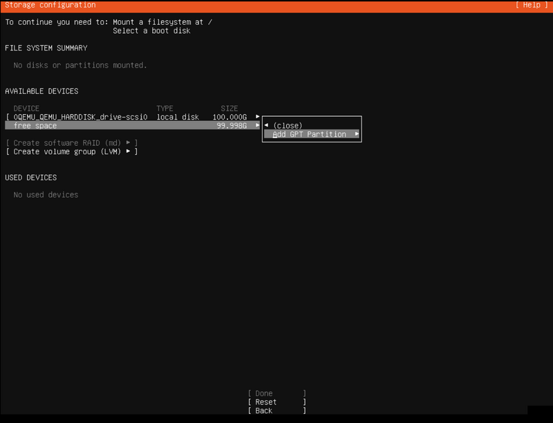 Tahap berikutnya adalah menulis ulang partisi, pada gambar di atas sudah tertera free space dari disk adalah 99,998GB atau 100 GB.