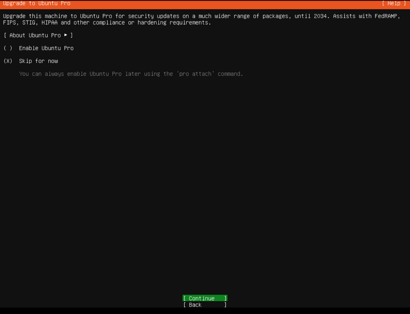 Tahap selanjutnya adalah penggunaan Ubuntu pro, karena kita buka member dari Ubuntu Pro, maka pada tahap ini kita Skip saja